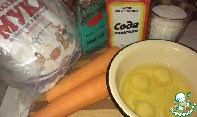 В меньшей миске взбиваем миксером яйца, сахар, какао-порошок и гашеную соду.