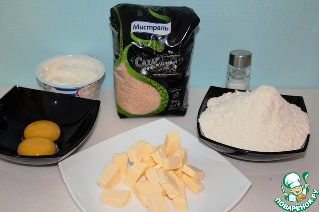 Подготовить ингредиенты для песочного теста. Масло сильно охладить охладить в морозилке, нарезать кубиками.