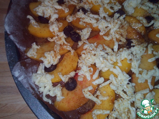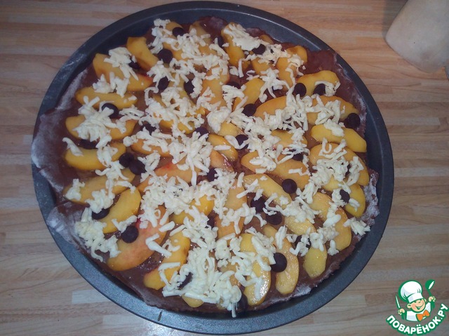 В осенне-зимне-весенний период такую пиццу можно поробовать приготовить с: консервированными персиками, грушами, шароном. А может, даже с карамелизированной тыквой? Все зависит от полета фантазии!