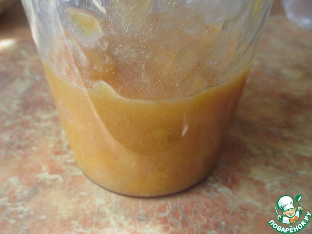 Добавить сахарную пудру. Взбить миксером с обычными насадками до состоянию пюре с крупными кусочками. У меня получилось 300 мл пюре.