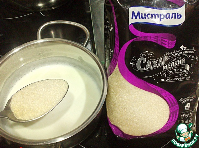 Молоко довести до кипения, добавить тростниковый сахар ТМ "Мистраль" и рис. Желательно использовать рис Жасмин ТМ "Мистраль", он очень ароматный и отлично подходит для десертов.
