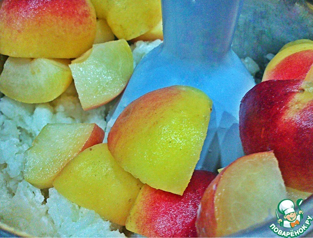 Отваренный рис соединить с нарезанным нектарином (2шт.) и взбить блендером до однородной массы.
