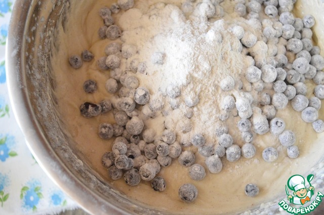 Голубику моем, сушим на бумажном полотенце и посыпаем 2 ст. л. муки. Хорошо перемешиваем.