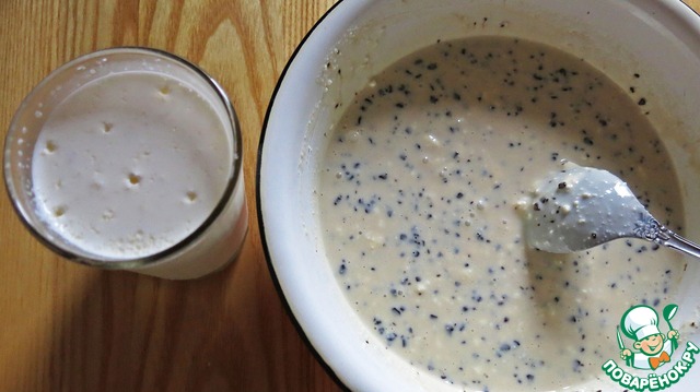Муку смешиваем с разрыхлителем, просеиваем и вмешиваем в тесто. Оно должно получится довольно густым. Форму (22 см.) смазываем растительным маслом и выкладываем в нее тесто. Разравниваем ложкой. Отправляем в разогретую на 180 градусов духовку на 20-25 мин.