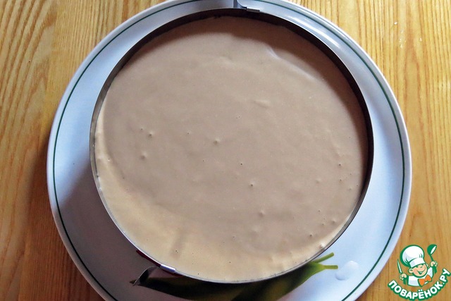Приготовление суфле лучше начинать, когда бисквит будет уже остывать. Желатин нужно замочить мин. на 20 в сливках. За это время соединяем в другой чашке сгущенку, творог и кофе.