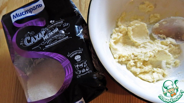 Сахар растереть с маслом.