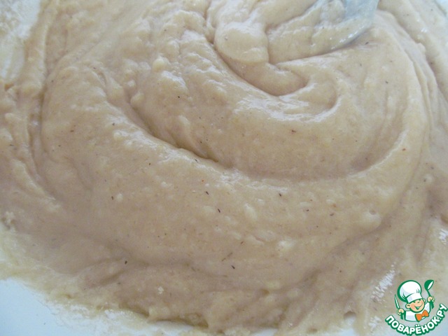 2. Яйца взбить с сахаром, ванилином. Добавить сметану, мускатный орех, растительное масло, муку и разрыхлитель.