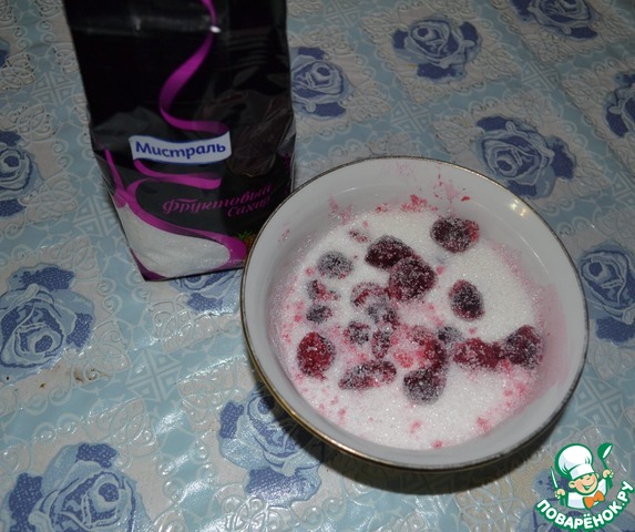 Вишню надо пересыпать половиной того сахара, что мы приготовили.