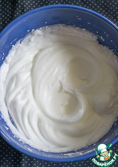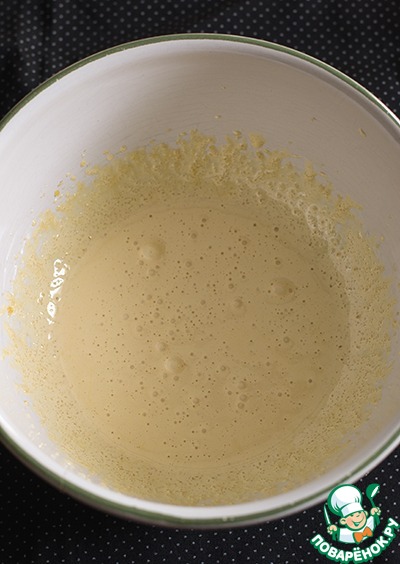 Отделить белки от желтков. Желтки и сахар взбить до белой пены.