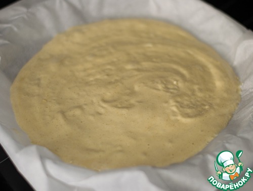 Форму диаметром около 20 см накрыть бумагой для выпечки. Выложить тесто и печь при 200 град. около 20 минут или до сухой спички. Охладить и снять аккуратно бумагу.