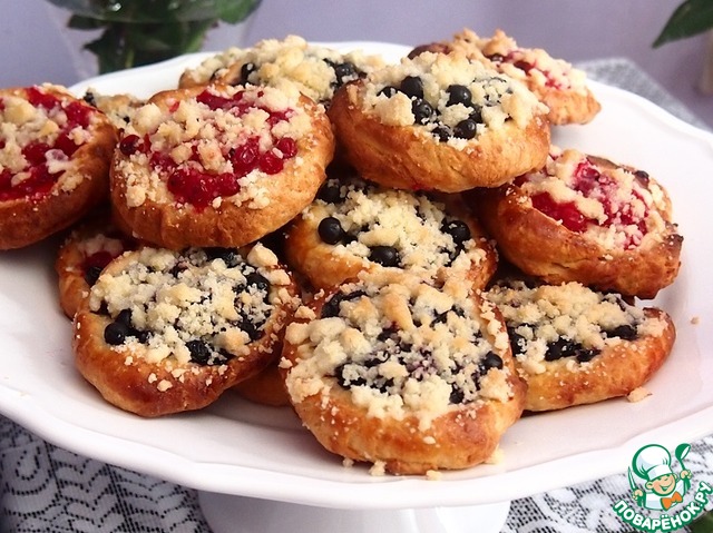 | Сегодня у меня снова вариации на тему традиционной чешской выпечки. Кстати, то, что я назвала ватрушками по-чешски называется «калачи», но поскольку для нас калачи - это совсем из другой оперы, пусть будут ватрушки. Традиционно они делаются с творогом, вареньем или маком, а наши ватрушки будут со свежими ягодами – с красной смородиной и черникой (мне очень нравится ее чешское название – борувки). Короче говоря, будем печь калачи с борувками. Дрожжевое тесто по классическому рецепту готовится с добавлением топленого сала, но мы не будем заходить настолько далеко и добавим растительное масло. Вкусное ароматное тесто, кисленькие ягодки под шубкой сладкого штрейзеля особенно по вкусу придутся вашим деткам, а взрослым тоже советую не зевать, потому что ватрушечки исчезают с космической скоростью. |