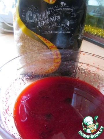 4. В сок добавить два вида сахара, ягоды черной смородины, ванилин.