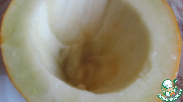 1. Подготовить дыню не большого размера, помыть, разрезать поперек, достать косточки.