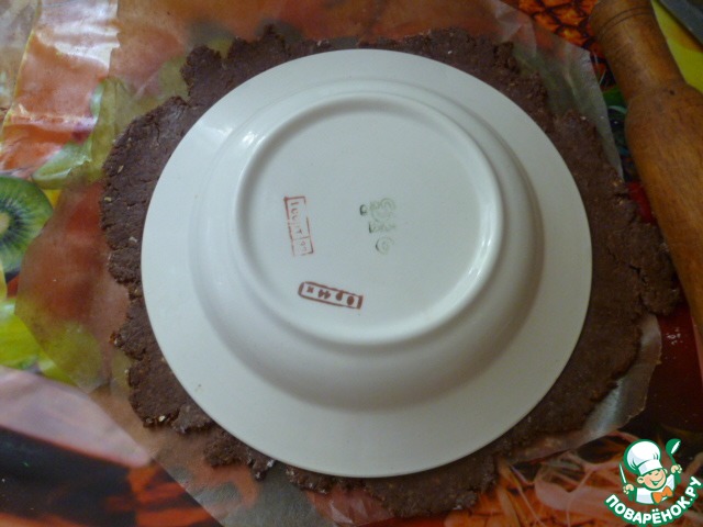 Прикладываем тарелку и обрезаем ненужные края ( которые складываем в пакет и держим в холоде).