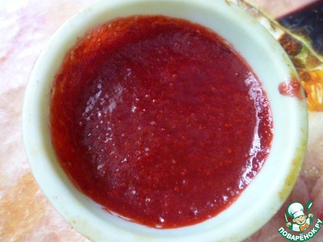 У меня было замороженное клубничное пюре, которое я заранее разморозила.