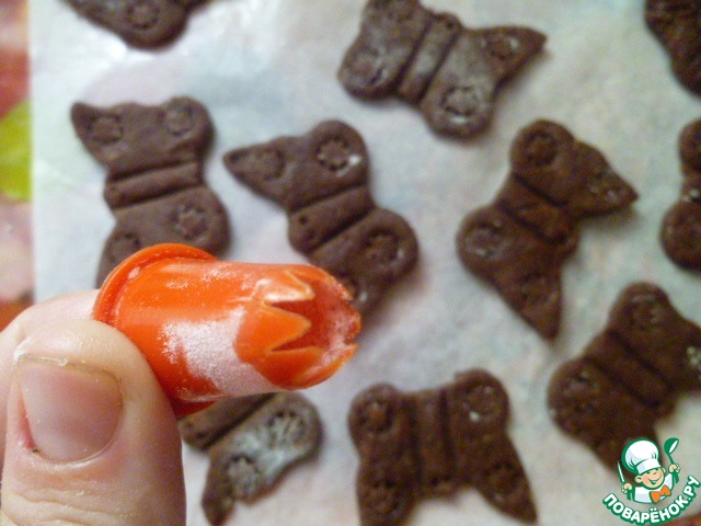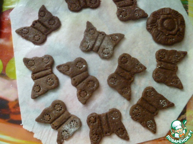 Остатки теста я раскатала на столе посыпанном мукой, вырезала бабочек.