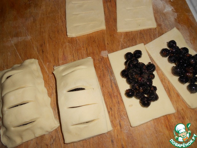 | Сочные и хрустящие слойки со смородиной! Готовятся очень быстро и съедаются также мгновенно. |
