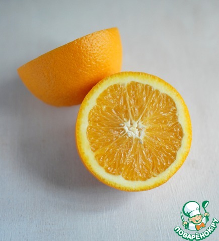 Потребуется 80 г свежевыжатого апельсинового сока. Одного среднего апельсина будет достаточно. Лучше, чтобы апельсин был кисленьким, чтобы в тесто была реакция с содой. Если апельсин слишком сладкий, до дополнительно добавьте ложку лимонного сока.