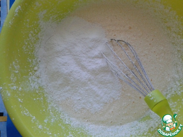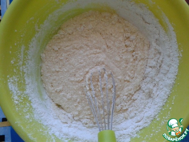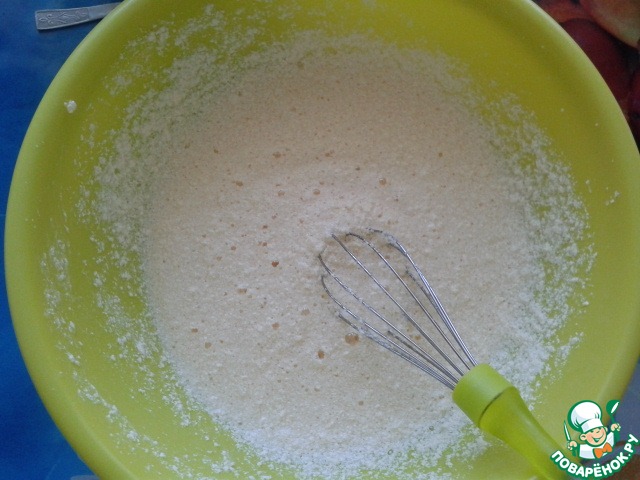 Все взбить минуты 3, чтобы образовались пузырики. Я делаю обычным венчиком, так как нет миксера, это еще одно преимущество рецепта.