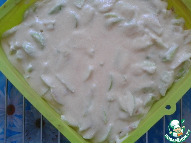 Если чуть меньше, чтобы тесто покрывало все яблоки, то она получится с пышной корочкой.