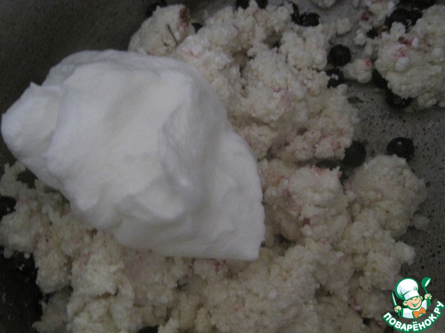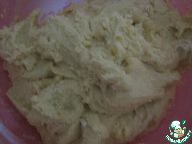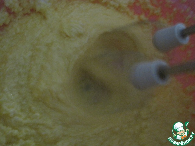 Добавляем разрыхлитель и муку, замешиваем тесто.