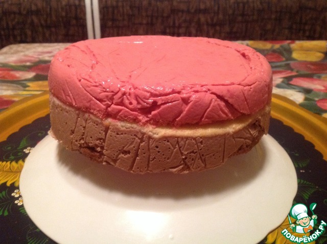Выпечь 2 коржа тонких по размеру формы. Мин 7-10 у меня пеклись. Оставить остывать.