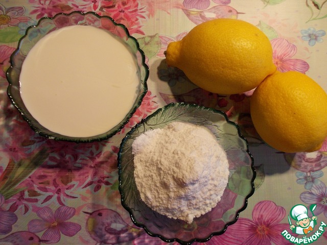 Три ингредиента, из которых готовится десерт: лимон, сливки и сахарная пудра.