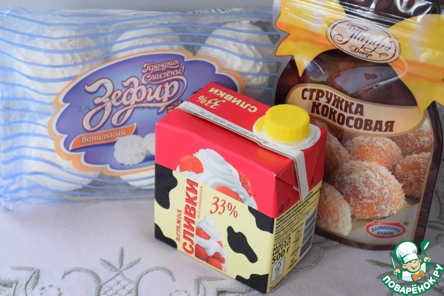 Вот это все, что нам понадобится. Зефир, как я уже писала, можете брать любой на свое усмотрение. Я это мороженое делаю уже неделю подряд, с разным зефиром. Больше всего понравилось с клюквенным, но это на любителя.