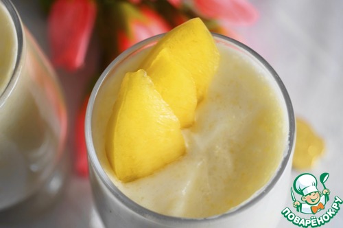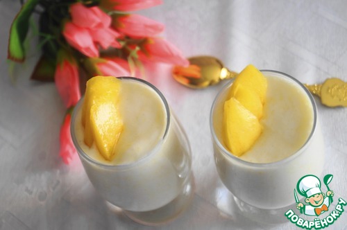 Разливаем по бокалам. украшаем нарезанным персиком и убираем в холодильник на 30-60 минут. Затем подаем к столу и пробуем. Приятного аппетита!