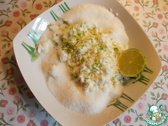 Творог протереть через сито, добавить натертую цедру и сок лайма, оставшийся сахар. Все перемешать.
