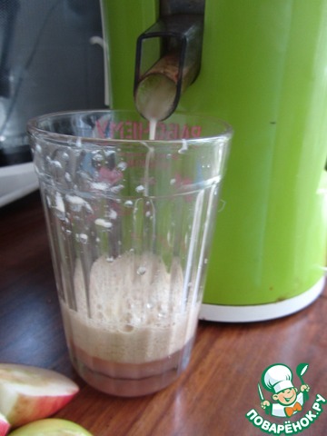 При помощи соковыжималки, из яблок выжать сок.