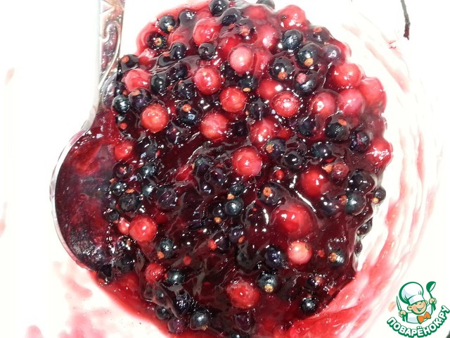 Перемешать крахмал с 4 ст. л. вишневого сока. Вскипятить оставшийся сок, снять с огня, вылить в него крахмал, размешать, положить половину ягод и вновь поставить на медленный огонь на 1 минуту, помешивая ложкой. Снять с огня и добавить оставшиеся ягоды. Дать массе остыть.