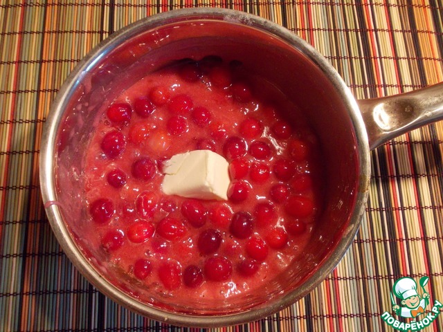 Добавить клюкву, варить ещё 5 минут. Остудить, вбить сливочное масло.