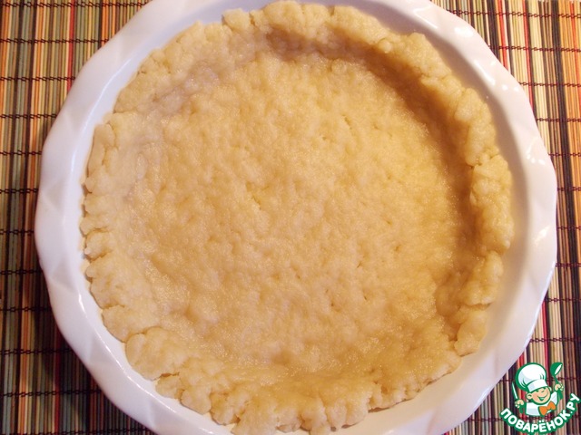Для теста. Оставшуюся муку смешать с оставшимся сахаром. Растительное масло смешать с водой. Соединить обе массы, вымесить крутое тесто. 1/4 часть теста скатать в шар, убрать на 10 минут в морозилку. Оставшееся тесто раскатать по круглой форме, сделав бортики.