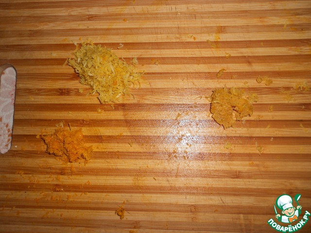 С помощью мелкой терки получаем по 1 ч. л. цедры каждого фрукта.