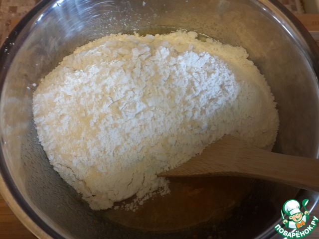Всыпаем муку, смешанную с разрыхлителем