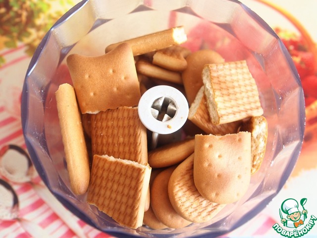 Печенье (у меня детское) поломать на кусочки и поместить в блендер.