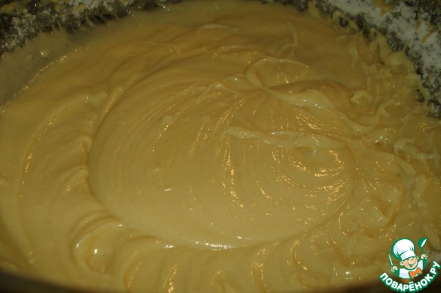 Муку смешать с разрыхлителем и ванильным сахаром. Добавляем к массе и взбивать, но уже на маленькой скорости.