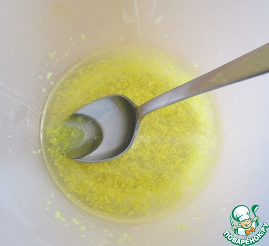 Смешать растительное масло+вода+цедра+сок лимона. Размешать.