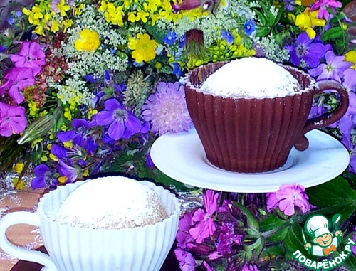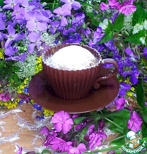 Не вынимая из формочек, кексы посыпала сахарной пудрой через сито.