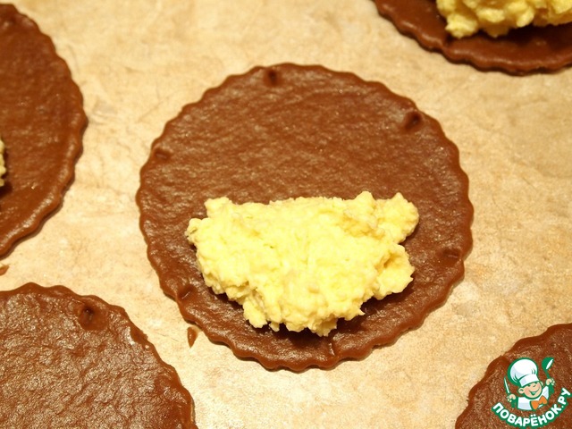 На каждую половинку кружка выложить по 1 ч. л. творожной начинки.