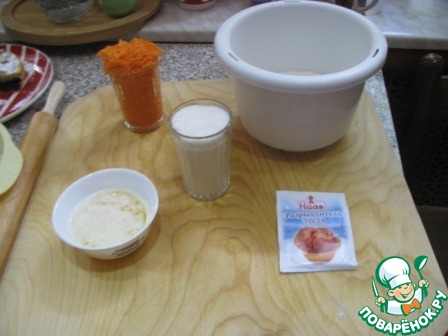 Муку отмерить, просеять вместе с разрыхлителем. Морковь натереть на средней терке. Масло растопить.
