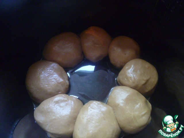 Выложила в нее булочки и поставила в прогретую духовку до 100 градусов на 1 час.