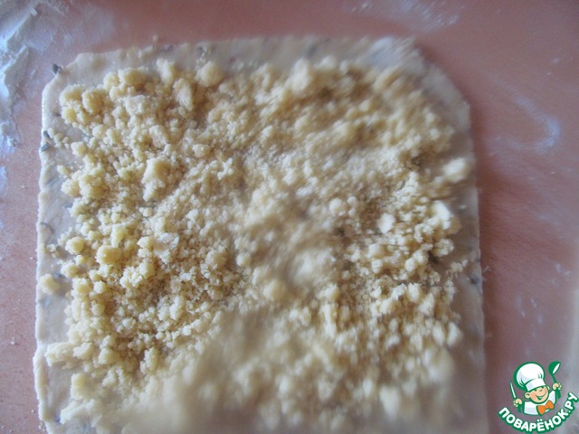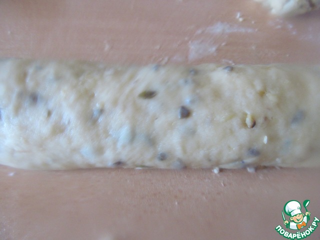 5. Раскатать тесто, выложить начинку, скрутить в рулет