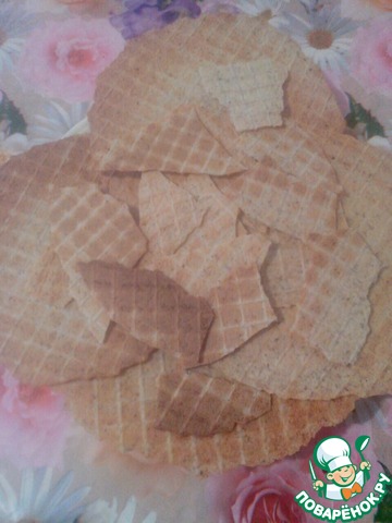 Включить вафельницу и дождаться нагрева. Смазать поверхность растительным маслом. Выкладывать по 2 ст. л. Весь секрет в получение тонких чипс- в первую минуту вафельницу надо крепко прижать чтоб тесто тоньше распределилось по всей поверхности. Будьте внимательны чипсы жарятся быстро. Как только чипсы готовы снять с вафельницы. Дать остыть и разломать.