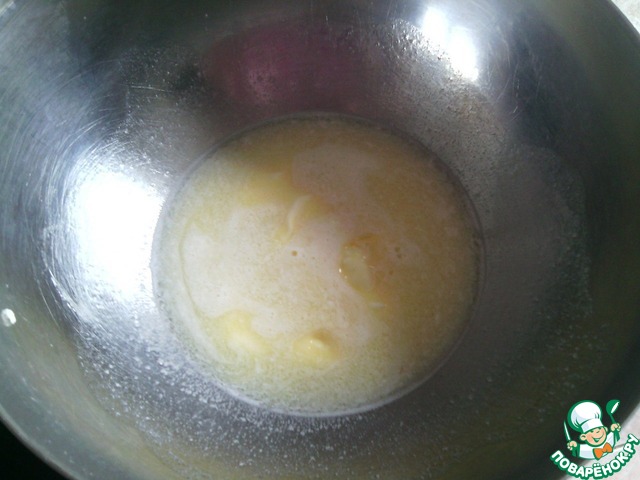 Когда немного остынет - добавить два яйца и сметану, перемешать