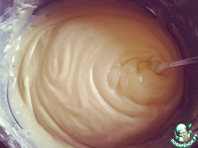 Добавить муку, обязательно просеянную. Тщательно перемешать. Тесто должно быть по консистенции как густая сметана. Выложить в форму. Я делаю в силиконовой- поэтому ничем ее не смазываю. Включаем духовку разогреваться до 180-190 градусов
