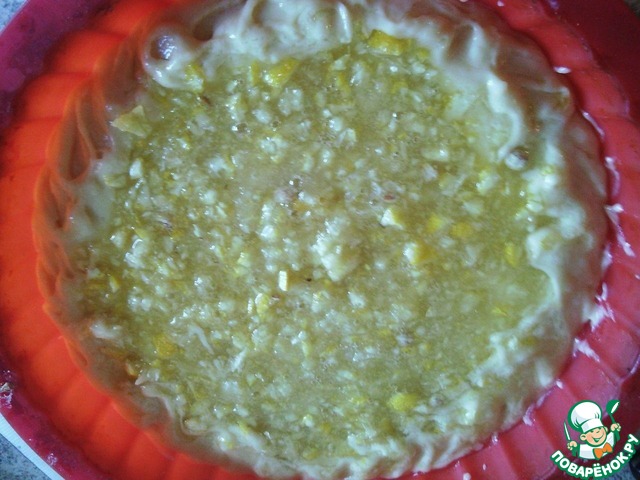 Теперь самое интересное! Не медля ни секунды выкладываем нашу начинку на тесто - чуть подтягиваем его от краев к центру пальчиками и ставим в духовку!