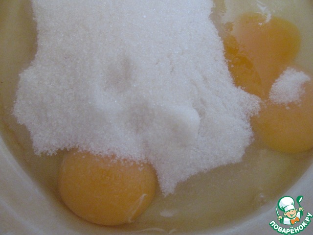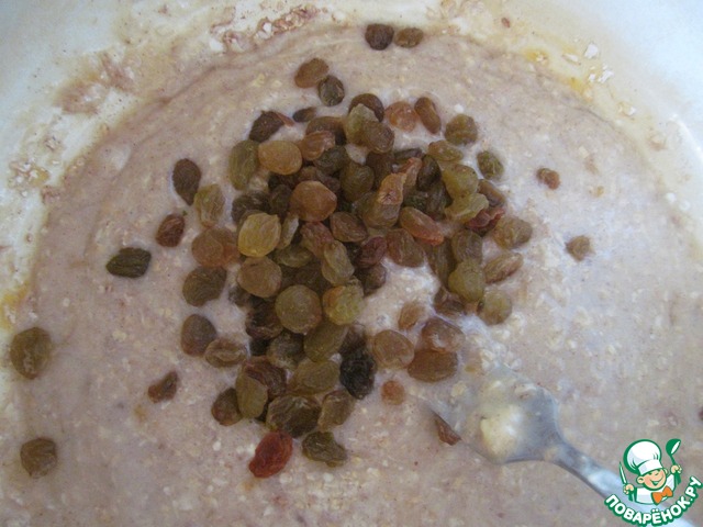 3. К яйцам добавить йогурт, растопленный маргарин, изюм.