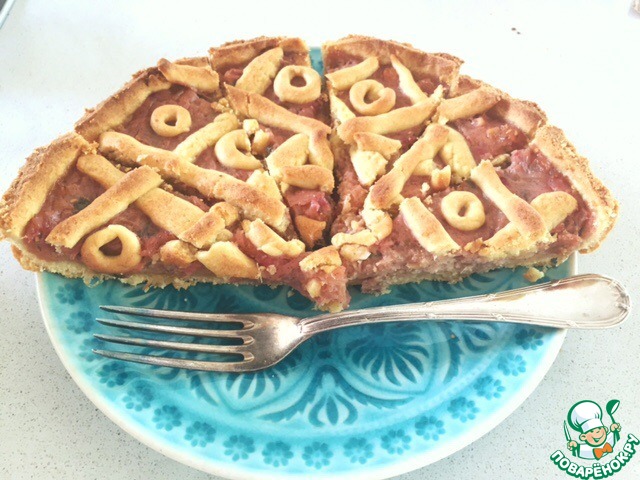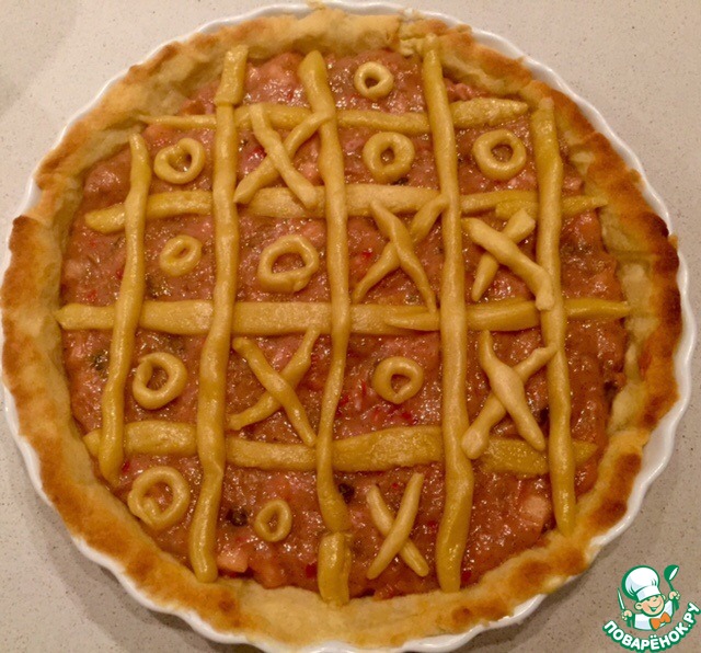 Пирог с ревенем и малиной "Крестики-нолики"
